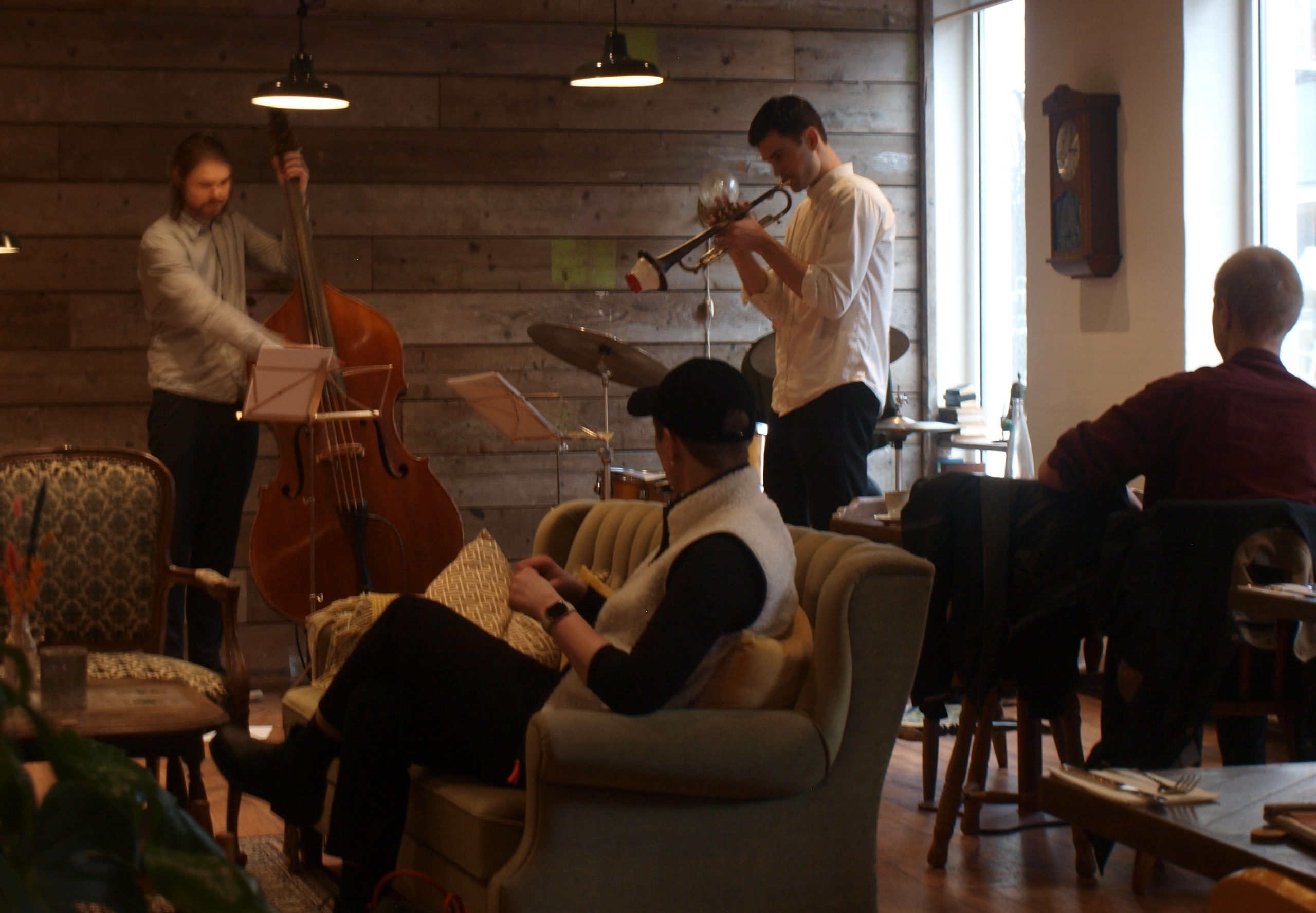 Lørdag eftermiddag hvor blæsten var taget lidt af og solen skinnede, dannende Esbjerg Bryghus rammen for at studerende på Syd Dansk Musik Konservatorium leverede en række spændene indslag ud i lokalet. Et tætpakket værtshus hvor der blev skaffet ekstra stole og mange måtte stå op. Der var flere der gerne ville have hørt musik, men blev nødt til at gå igen.  Der var god gang i at sende øl, kaffe mv. over disken.