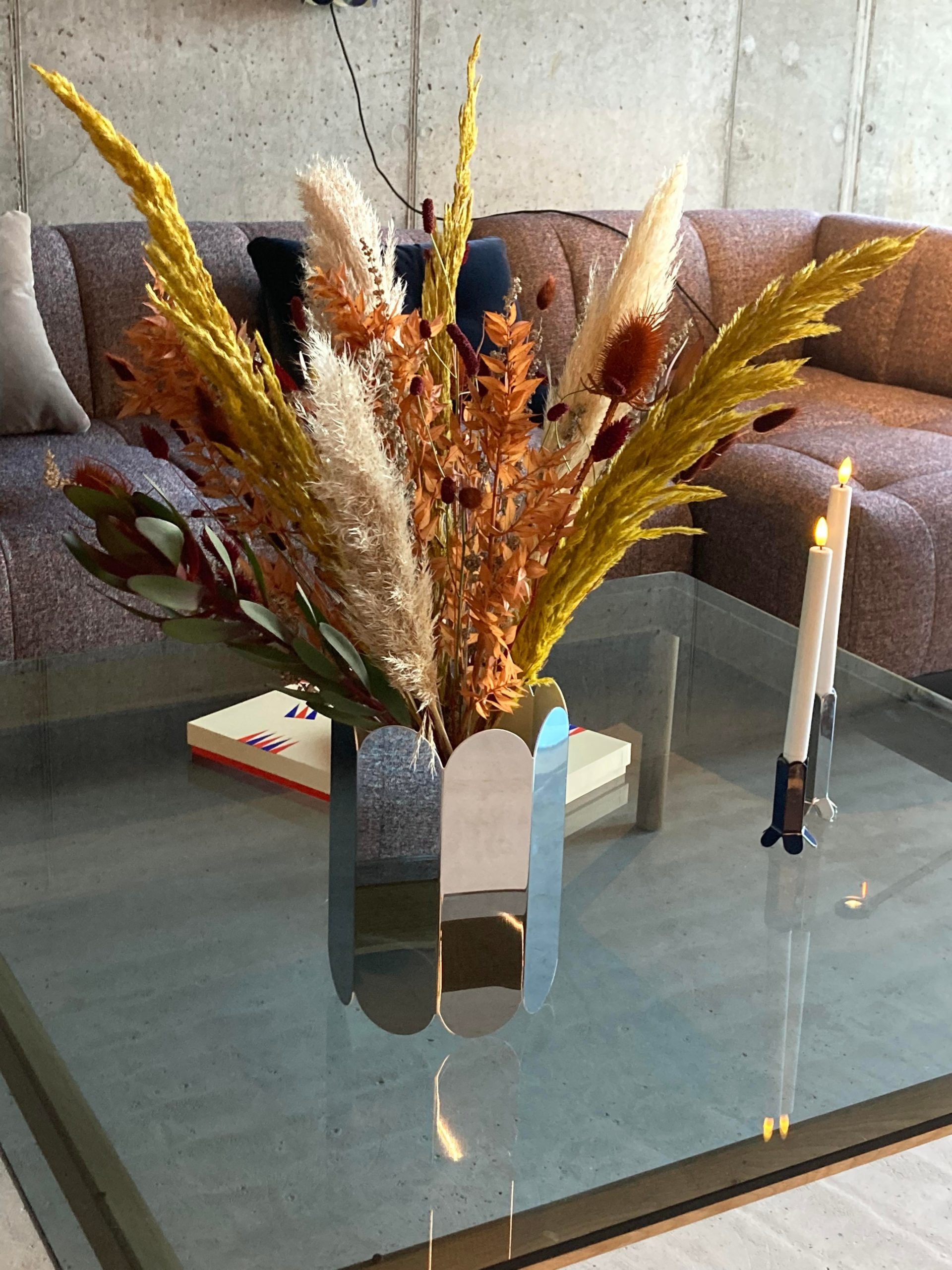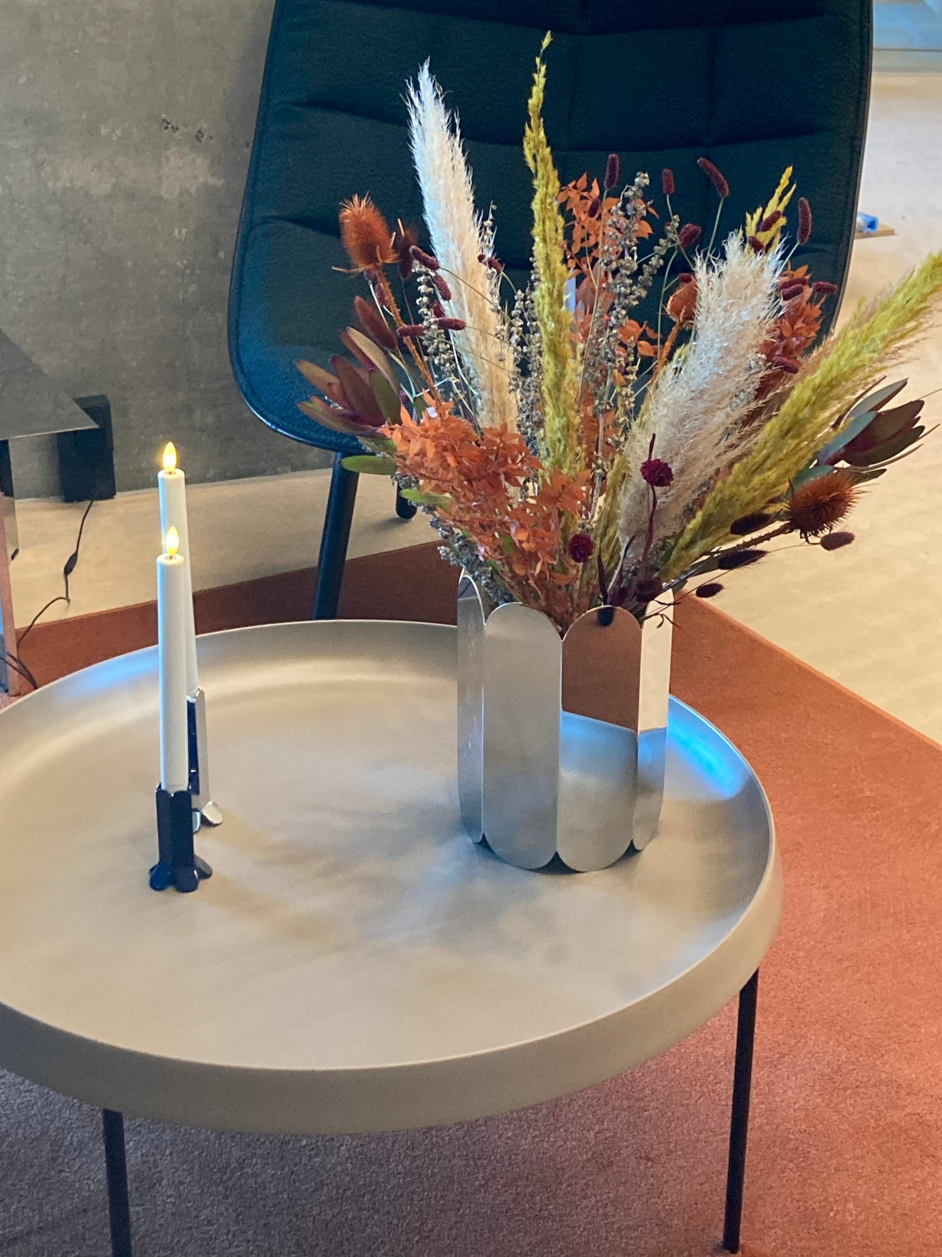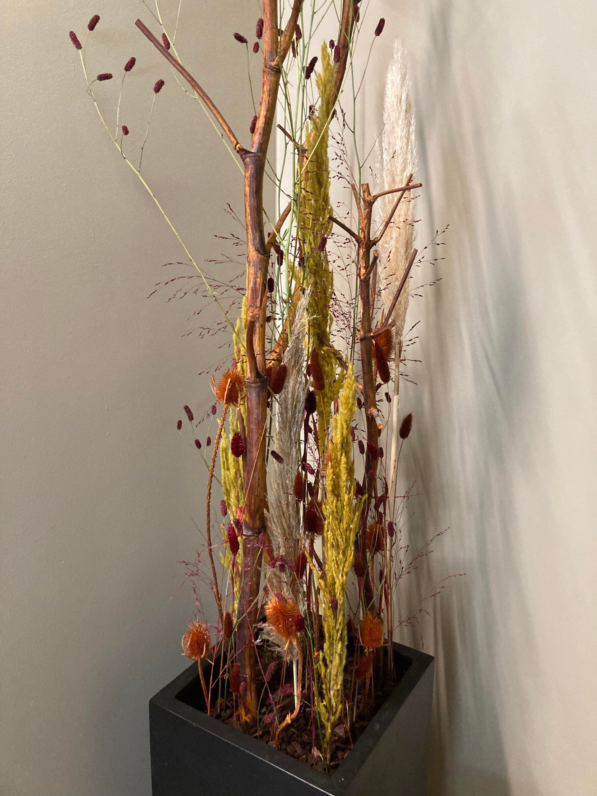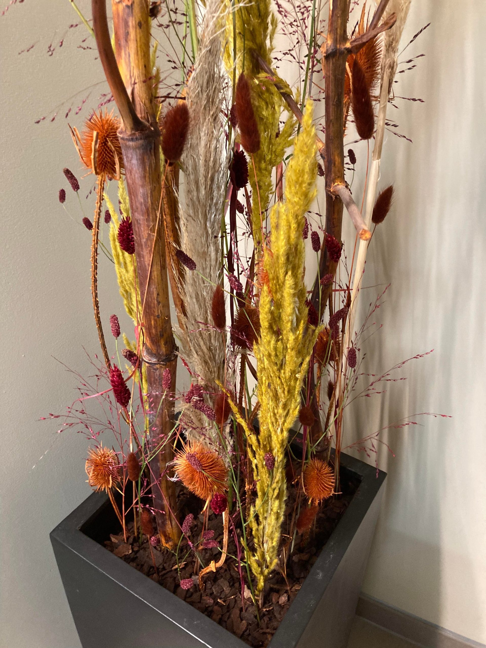 I alt har Louise leveret 8 tørre buketter til lobbyen, en krukke med tørret opsats og der skal plantes 6 krukker til lobbyen og 2 buketter til suiterne.
